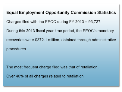 There may be employment issues lurking of which you are not even aware. (Consider all the discrimination charges filed in 2007 as this chart shows.) An attorney may recommend an employment audit. That's a review of your compliance with federal and state laws, including your current policy manual and other relevant documents such as employee applications, job descriptions and evaluations. Areas of risk will be identified and action steps recommended.